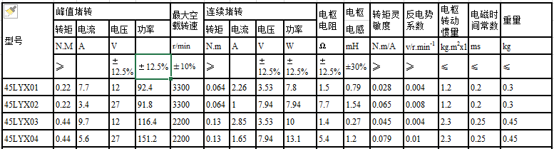 45LYX series dc torque motor performance parameters